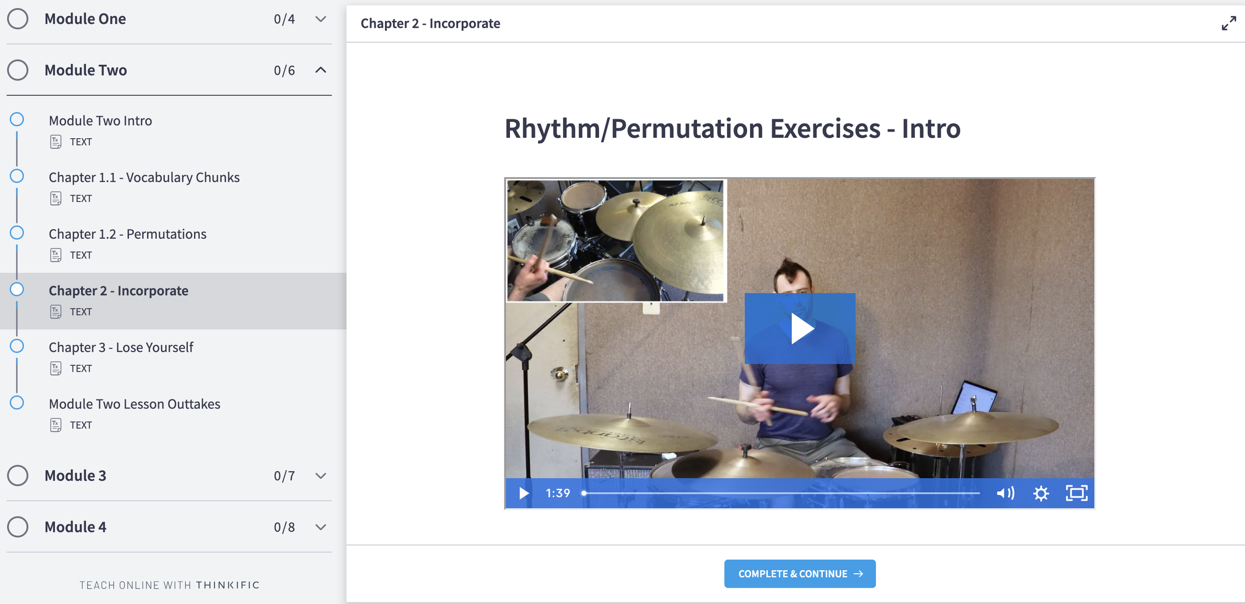 Over 96 separate videos, organized into 4 modules that grab you by the hand and take you step-by-step through the key insights and exercises to fine-tune your groove instincts.